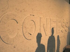 Confess makes me think of admitting that you’ve done something wrong, or perhaps something you’re uncertain about. I liked this idea of public confession –